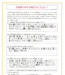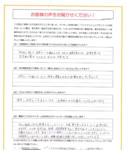 「家のことをFPに相談するなんて…」と不安に思っていた方々も、「もっと早く相談すればよかった」と感じてくださっています。実際に寄せられた手書きアンケートの一部を、抜粋してご紹介します。