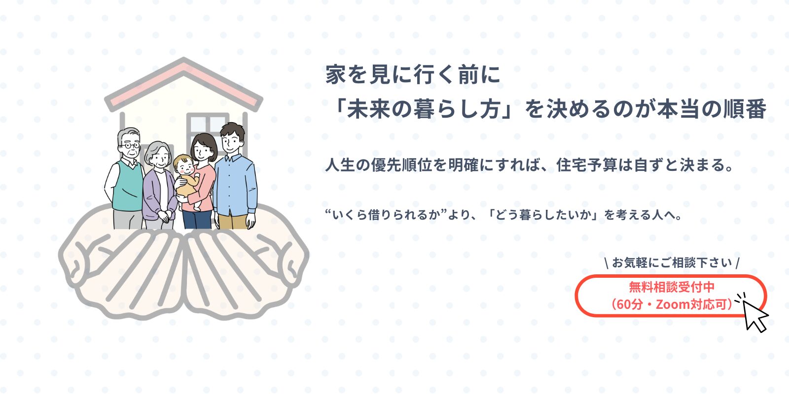 「住宅をどうするか」ではなく、「これからどんな人生を送りたいか」から考えることで、家選びも、お金の使い方も、ずっと納得できるようになります。