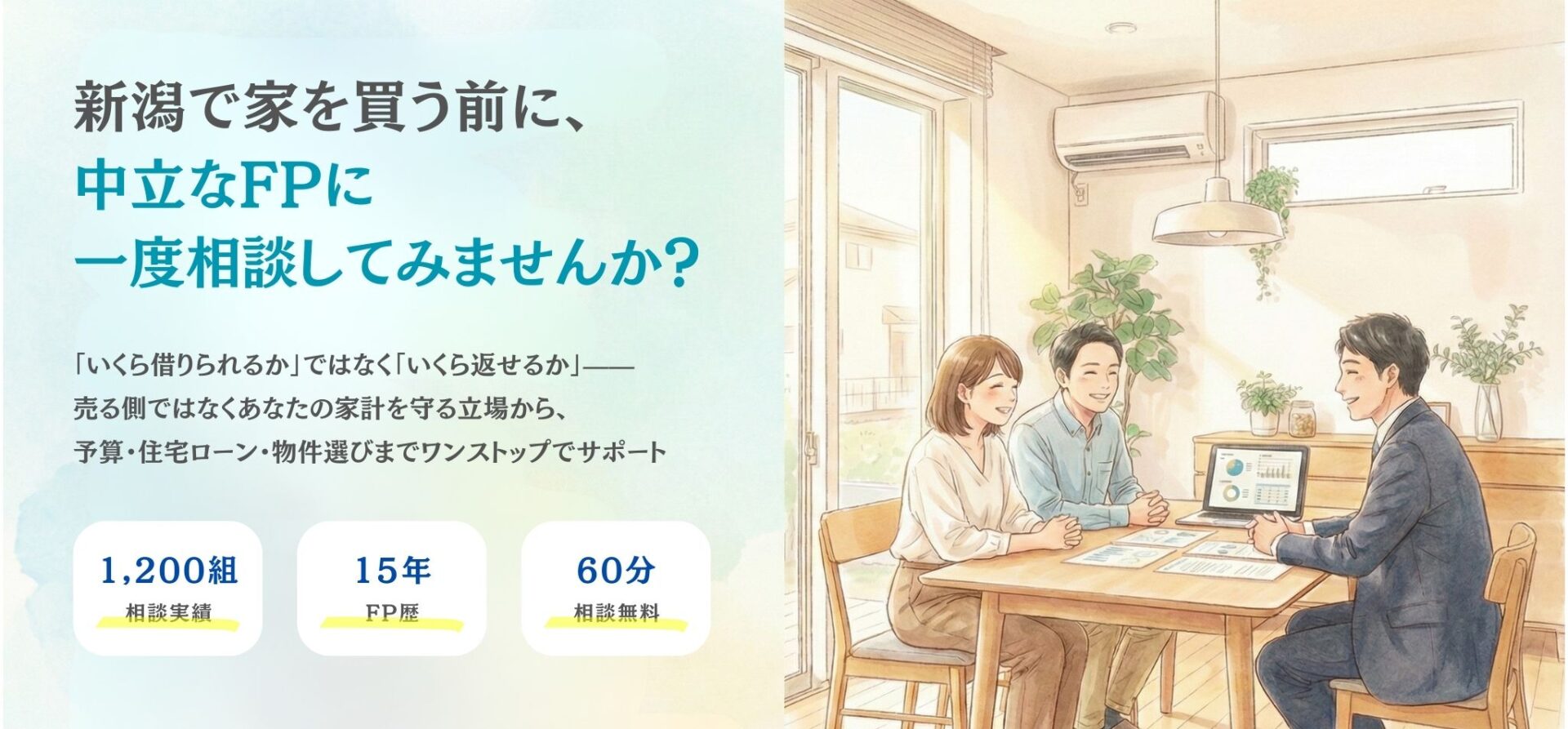 新潟で住宅購入を検討されている方から、よく聞かれる3つの悩みです。どれも60分の相談で整理できます。
