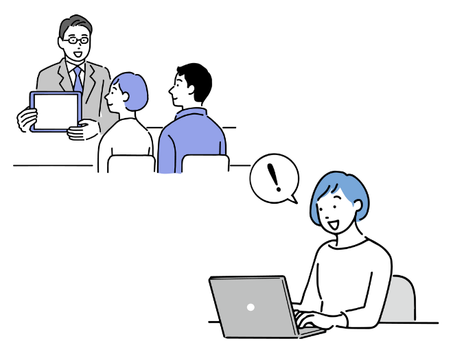 初回面談は弊社打ち合わせスペース、もしくはオンライン面談、いずれかとさせていただいておりますのでご了承ください。