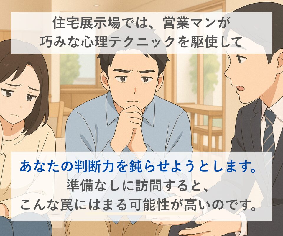 準備なしに展示場に行くと、営業マンの心理テクニックに誘導される可能性が83%!